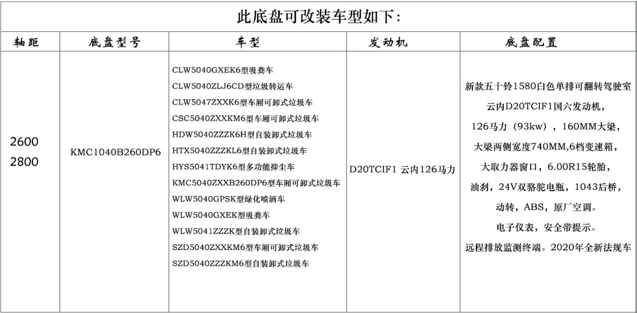 底盤型號KMC1040B260DP6