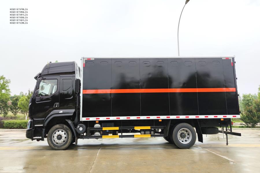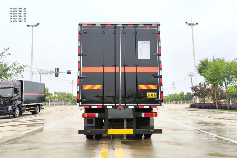 外板采用1mm厚冷軋板有一次性成型的百葉窗,內(nèi)飾為導(dǎo)電性能良好的鋁板有透氣孔,內(nèi)襯為矩形管骨架牢靠穩(wěn)定,內(nèi)部填充為透氣防潮阻燃的擠塑板,廂體外部上下鋁合金型材包邊,底板和車廂前下部鋪橡膠皮,后門雙開,右側(cè)選裝側(cè)開門,內(nèi)部有固定貨物的臥環(huán),車輛外部有靜電帶,滅火器,防火罩,車廂內(nèi)安裝煙霧報(bào)警器和門防盜報(bào)警器,嚴(yán)格按照國家危險(xiǎn)品相關(guān)法規(guī)張貼危險(xiǎn)品標(biāo)識(shí)和反光標(biāo)志等。