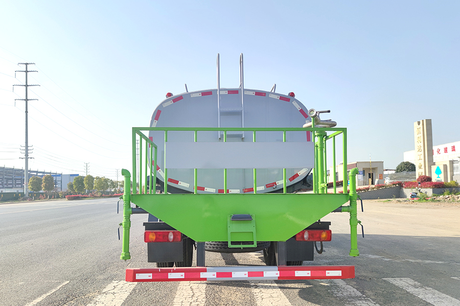 罐體采用 4mm 厚武鋼專用容積板制作,實際標(biāo)準(zhǔn)容積 12 立方-15 立方(常規(guī) 12 立方),罐內(nèi)隔板具有防波作用,以減低汽車行駛時罐體液體的沖擊。泵進泵出,消防栓接口,前沖、后灑、側(cè)噴、后工作平臺帶綠化水炮,垂直吸程≧7 米,灑水寬度≧14 米,射程≧28 米,引水時間<5min,流量 90m3/h。自流閥、濾網(wǎng)、帶自吸自排功能。兩根等長輸水管,金屬漆,其余標(biāo)配。霧炮灑水車可選裝:30 米、40 米、50 米等以上的霧炮機。