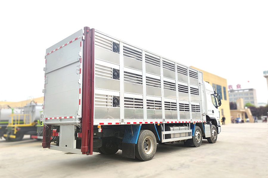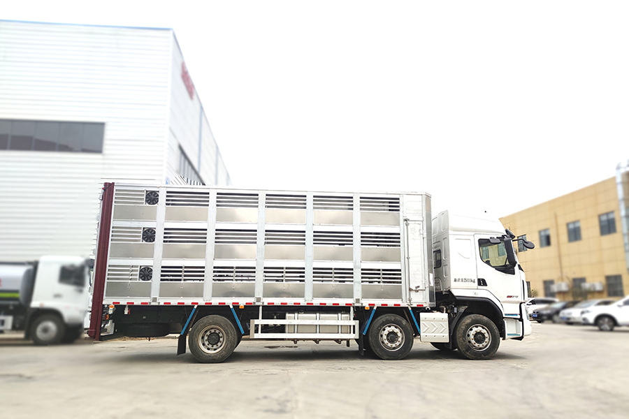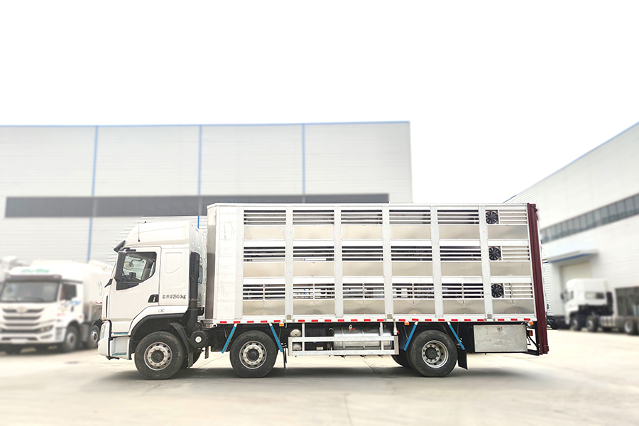 全鋁車身,三層,混合隔倉(cāng),可開(kāi)合側(cè)窗,高轉(zhuǎn)速防水通風(fēng)排氣扇,機(jī)組,噴淋,監(jiān)控,垂直升降尾板,空氣過(guò)濾,裝豬數(shù)量達(dá)到850頭/7公斤