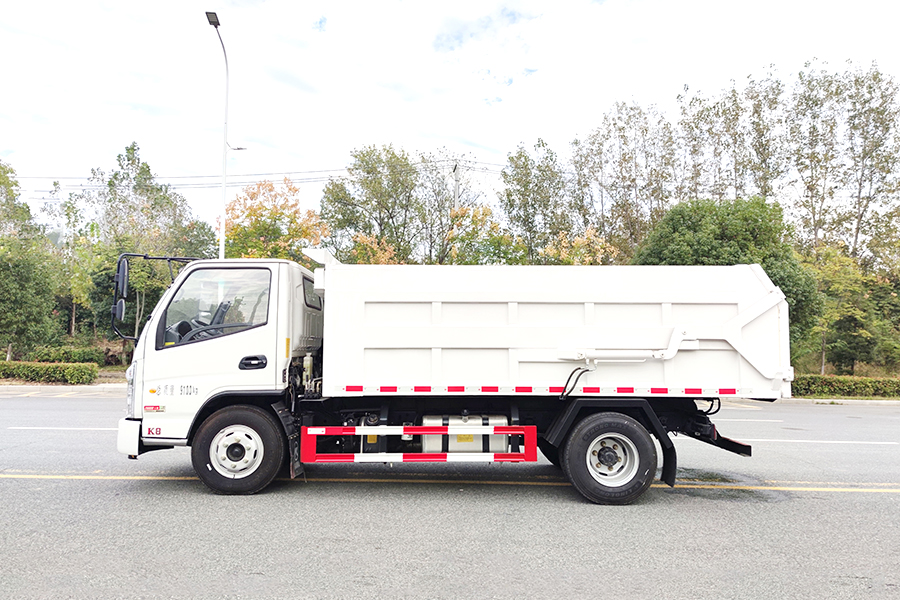 方形箱體,優質碳鋼制作,箱體底板4mm,邊板3mm,箱體選裝翼展蓋,液壓開啟,箱體后門剪刀式液壓開啟,后門帶密封條,國產油缸,國產多路閥;合肥液壓油泵,舉升油缸帶限位裝置,駕駛室電控操作,中置雙頂。