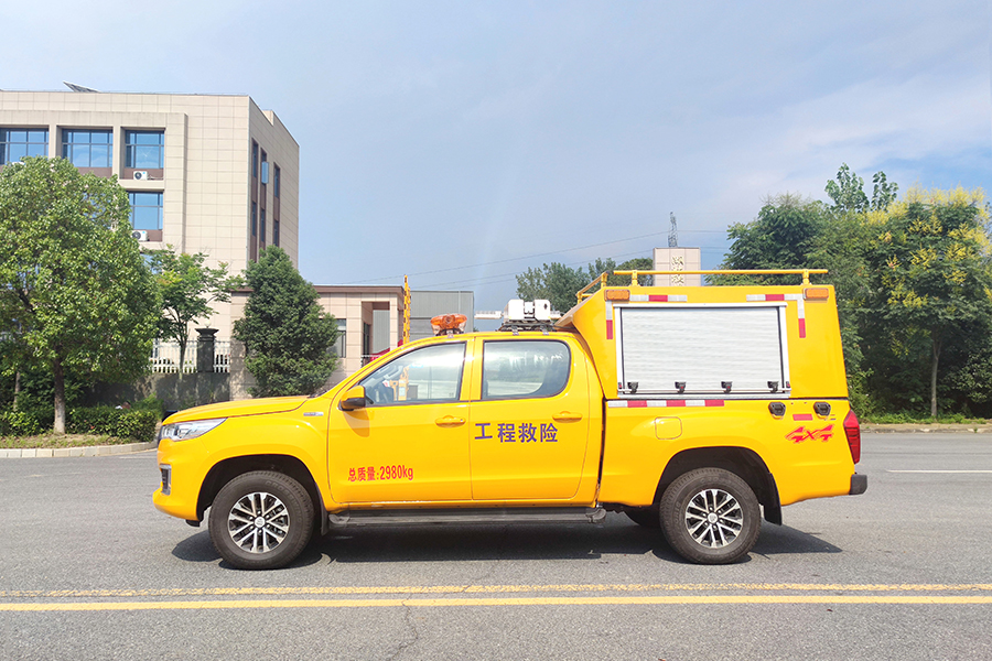 福田四驅(qū)皮卡工程應(yīng)急搶險救險車,具有高承載性,功能實(shí)用性和耐用性,具備快速的應(yīng)急響應(yīng)能力,該特種車是在福田雙排皮卡上進(jìn)行改造,加長封閉式貨箱有利于裝載存放更多的消防工具,車頂部安裝了工程警燈,車身采用醒目的工程黃,并貼有“工程救險車”的大字。